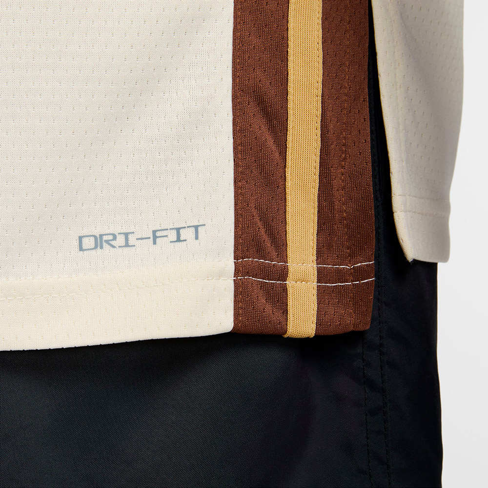 Junior Stephen Curry Golden State Warriors 25-26 City Edition Swingman. La camiseta City Edition de los Golden State Warriors de 2025-2026 (que se estrenó originalmente en 2019-2020) rinde homenaje a Oakland, conocida como "The Town", y al lugar que ocupa en la historia del equipo. La base de color crema representa la fuerza y la intensidad del equipo, mientras que el moderno diseño tono sobre tono agrupa una interesante combinación de colores en marrón oscuro y crema natural con un toque dorado. La paleta de colores encarna el orgullo, la determinación, la fuerza y el largo legado del equipo, la comunidad y la cultura de Oakland, que fue el hogar de los Warriors durante 47 temporadas.