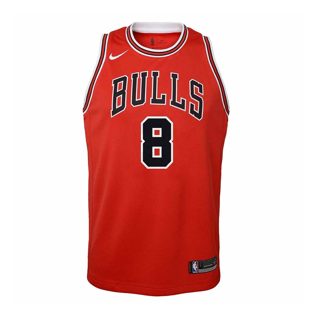 Junior Zach Lavine Chicago Bulls 22-23 Icon Edition Swingman. Aquí se presenta la prenda perfecta para cualquier fan del equipo establecido en Chicago. Diseñada con los colores, logotipos y detalles de diseño a juego con el equipamiento oficial del equipo de la NBA. Siguiendo la línea de la Icon Edition, Nike presenta esta camiseta de confección de doble punto premium y con tecnología Dri-FIT, ideal para animar y combinar con tu equipo sobre la cancha