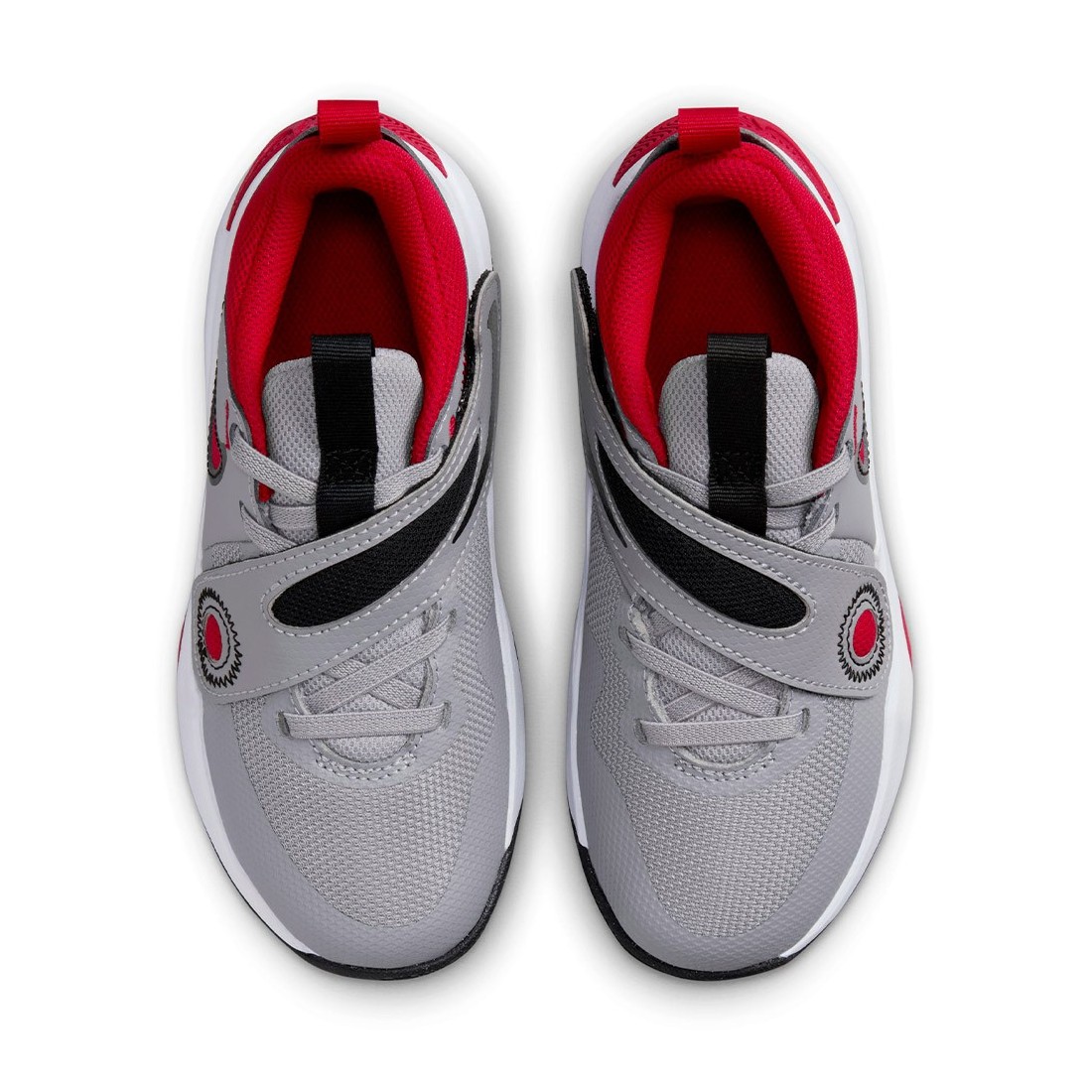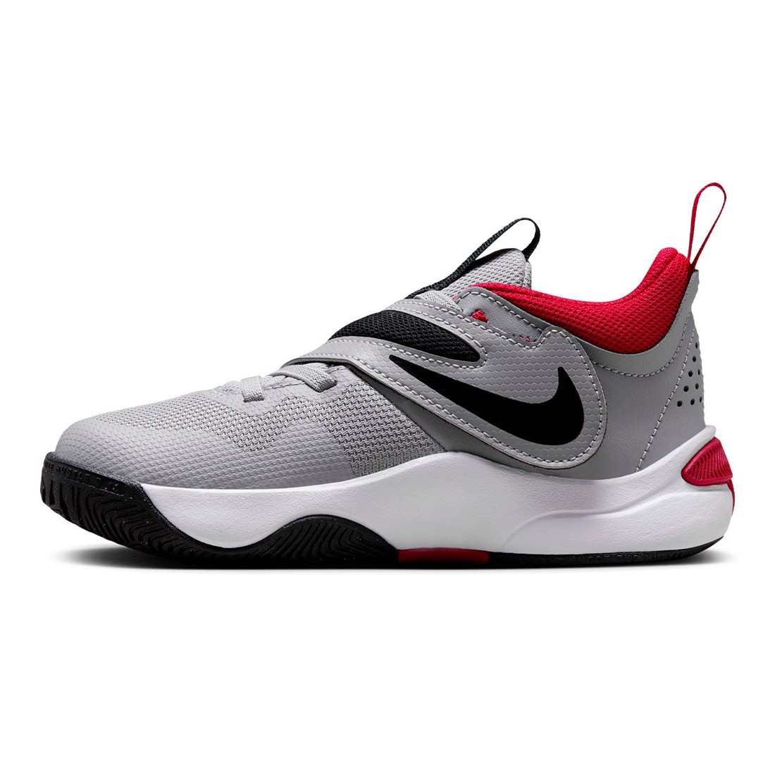 Kids Nike Team Hustle D 11 Cement Grey. Entrenamiento de baloncesto. Clase de gimnasia. Diversión al aire libre. Hazlo todo con las Nike Team Hustle D 11. Con la 11.ª edición de la serie Team Hustle D, nuestra máxima prioridad era conseguir un diseño fácil de poner y quitar. Los cordones elásticos ofrecen una abertura amplia. Las correas grandes protegen los pies de tus peques. Además, la amortiguación es más mullida que en las ediciones anteriores.