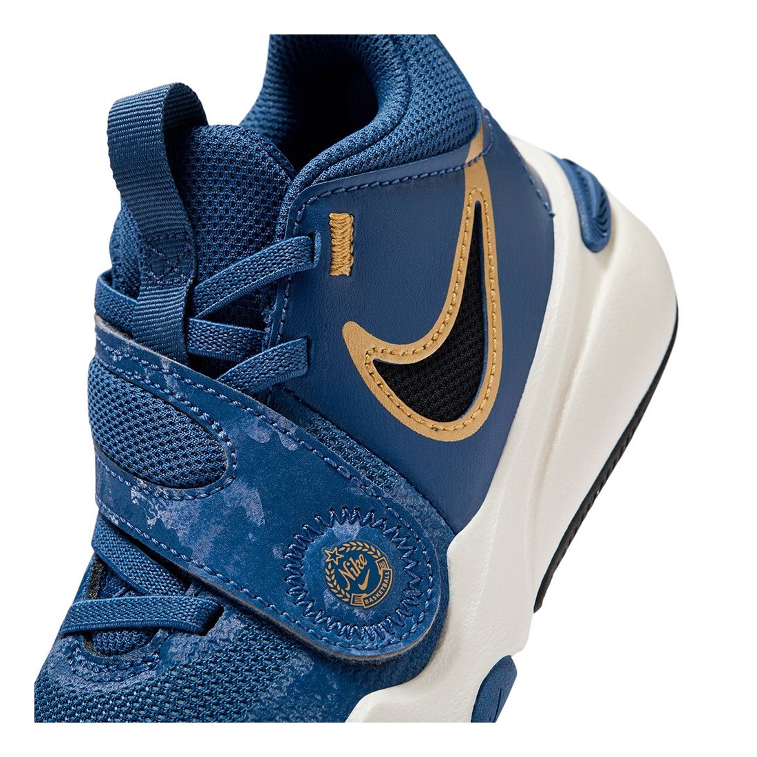 Kids Nike Team Hustle D 11 Mystic Navy. Entrenamiento de baloncesto. Clase de gimnasia. Diversión al aire libre. Hazlo todo con las Nike Team Hustle D 11. Con la 11.ª edición de la serie Team Hustle D, nuestra máxima prioridad era conseguir un diseño fácil de poner y quitar. Los cordones elásticos ofrecen una abertura amplia. Las correas grandes protegen los pies de tus peques. Además, la amortiguación es más mullida que en las ediciones anteriores.