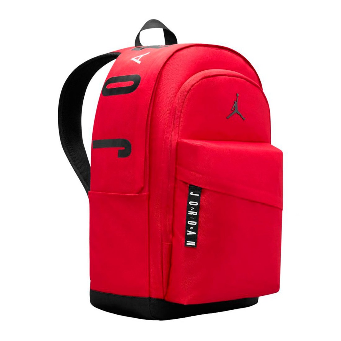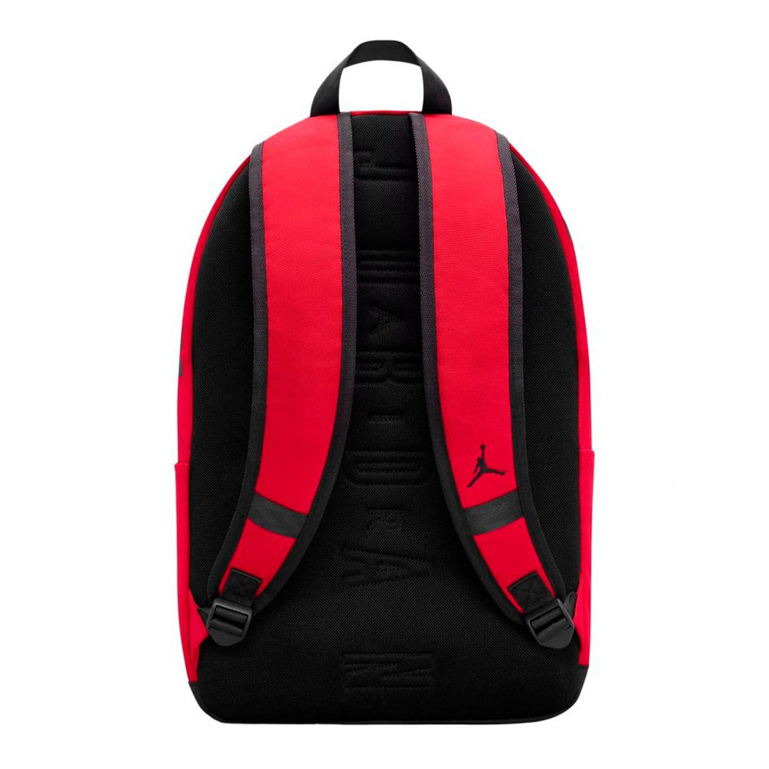 Mochila Jordan Air Patrol AOP Black Gym Red. La marca Jordan proporciona ropa deportiva pero también complementos de gran utilidad como esta mochila que ha sido diseñada específicamente para llevar todos aquellos objetos necesarios para el día a día, los cuales se guardan en un espacio seguro, funcional y amplio. Correspondiendo a los 21 Litros de capacidad, sus dimensiones son: 30 cm de ancho, 51 cm de alto y 17 cm de largo.