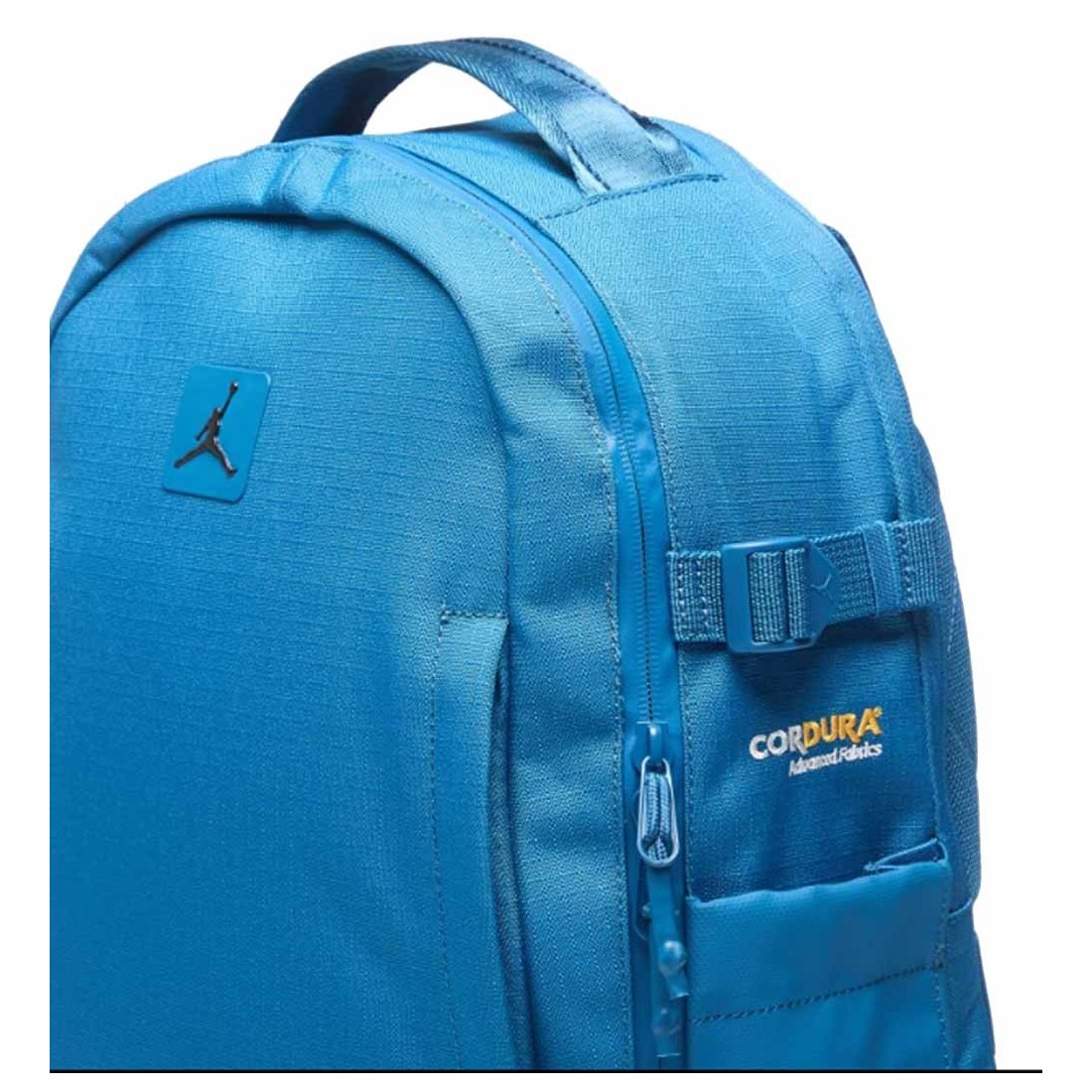 Mochila Jordan Cordura Franchise Industrial Blue. ¿Cuál es el ingrediente secreto que tiene esta mochila? Está confeccionada con una tela ripstop CORDURA® duradera, resistente a abrasiones, desgarres y golpes, además del acabado repelente al agua que ayuda a mantener tus pertenencias seguras y secas. El compartimento principal con cierre de dos vías es lo suficientemente espacioso como para transportar libros de texto o una muda de ropa para el gimnasio o un viaje nocturno. El panel trasero con cierre de dos vías contiene un organizador con fundas acolchadas para laptops y tabletas. Los dos bolsillos grandes con cierre en la parte delantera permiten guardar objetos pequeños a los que quieres acceder fácilmente y los bolsillos laterales pueden almacenar tus botellas favoritas.