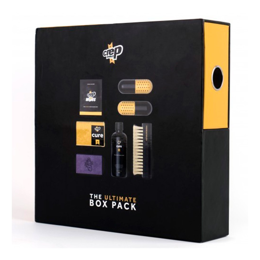 Pack Crep Protect The Ultimate Box. Cuida de tus zapatillas con los mejores productos unidos en una misma caja de Crep Protect. Incluye todos los productos necesarios para poder tener tus zapatillas limpias y sin mal olor para que presumas de ellas al máximo siempre que te las pones.
