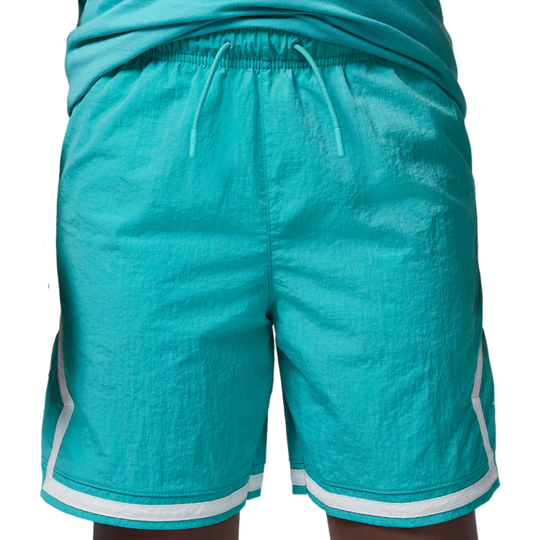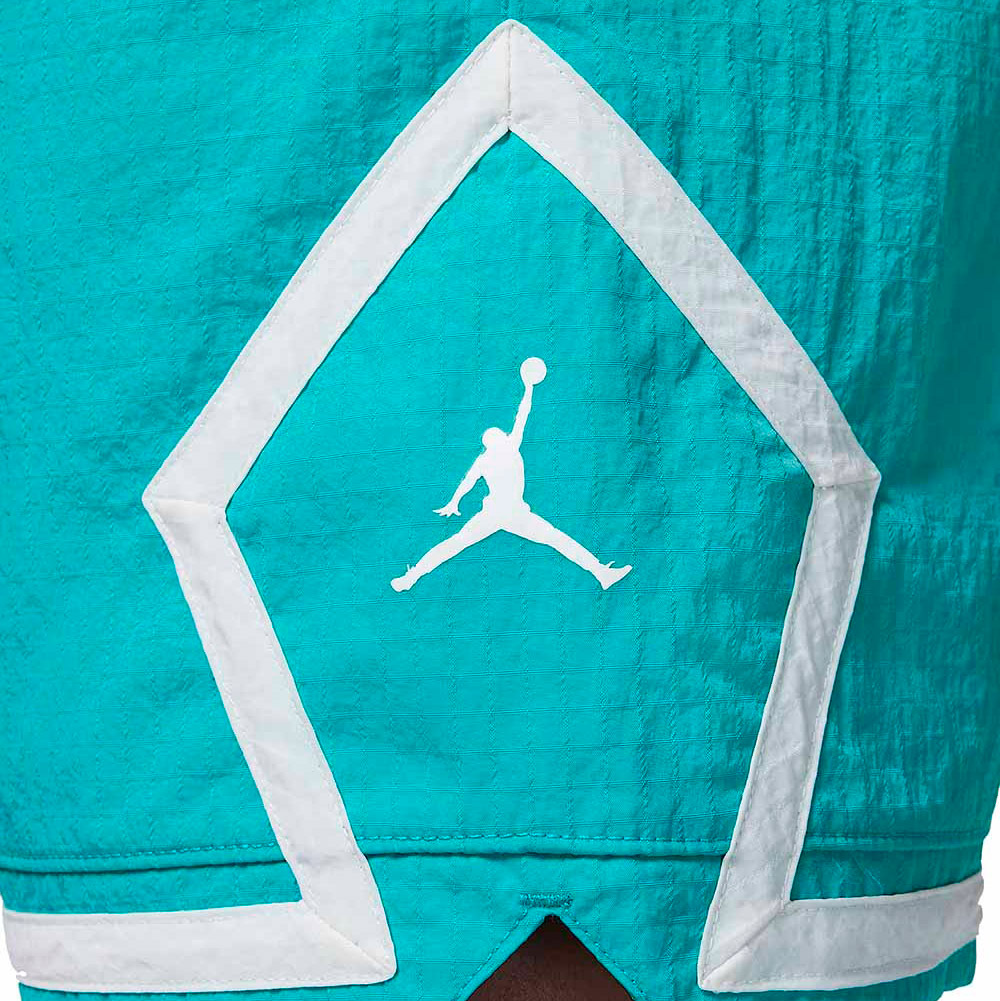 Pantalón Junior Jordan Woven Diamond Washed Teal. La versión junior de este pantalón jordan está fabricada con un tejido ripstop de nailon ligero, diseñado para ofrecer una gran durabilidad sin sacrificar frescura en días cálidos. Cuenta con cintura elástica con cordón ajustable que asegura un ajuste cómodo y adaptable al crecimiento, además de bolsillos laterales funcionales donde guardar llaves, móvil o pequeños objetos. Con un branding Jumpman discreto y un patrón tipo "diamond", estos pantalones cortos combinan estilo moderno, funcionalidad y la calidad reconocida de la marca Jordan.