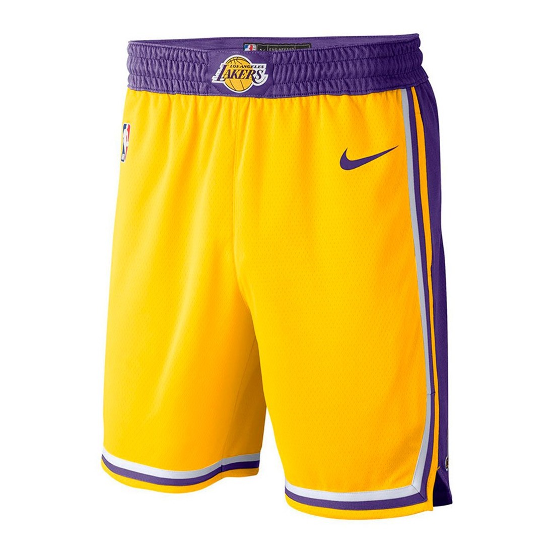 Pantalón Los Angeles Lakers Icon Edition. Inspirado en los auténticos uniformes de la NBA, el pantalón corto Los Angeles Lakers cuenta con un tejido de doble punto que capilariza el sudor con detalles de diseño que demuestran tu pasión por tu equipo y por el baloncesto.