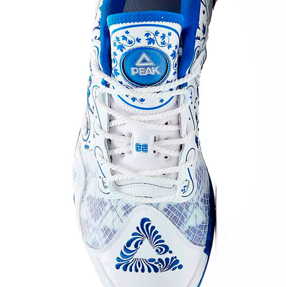 Peak AW 3 Leaves Blue White. Las Peak AW 3 son unas zapatillas de baloncesto de alto rendimiento que destacan por su tecnología innovadora y diseño vibrante. Con un sistema de entresuela intercambiable Switch, permiten elegir entre una unidad completa de espuma TaiChi o una combinación de espuma SUPER P‑Motive en el antepié y TaiChi en el talón, adaptándose a diferentes estilos de juego. La amortiguación y la reactividad son superiores, ofreciendo soporte y protección frente a los impactos. La suela de goma proporciona tracción multidireccional y estabilidad en pista.