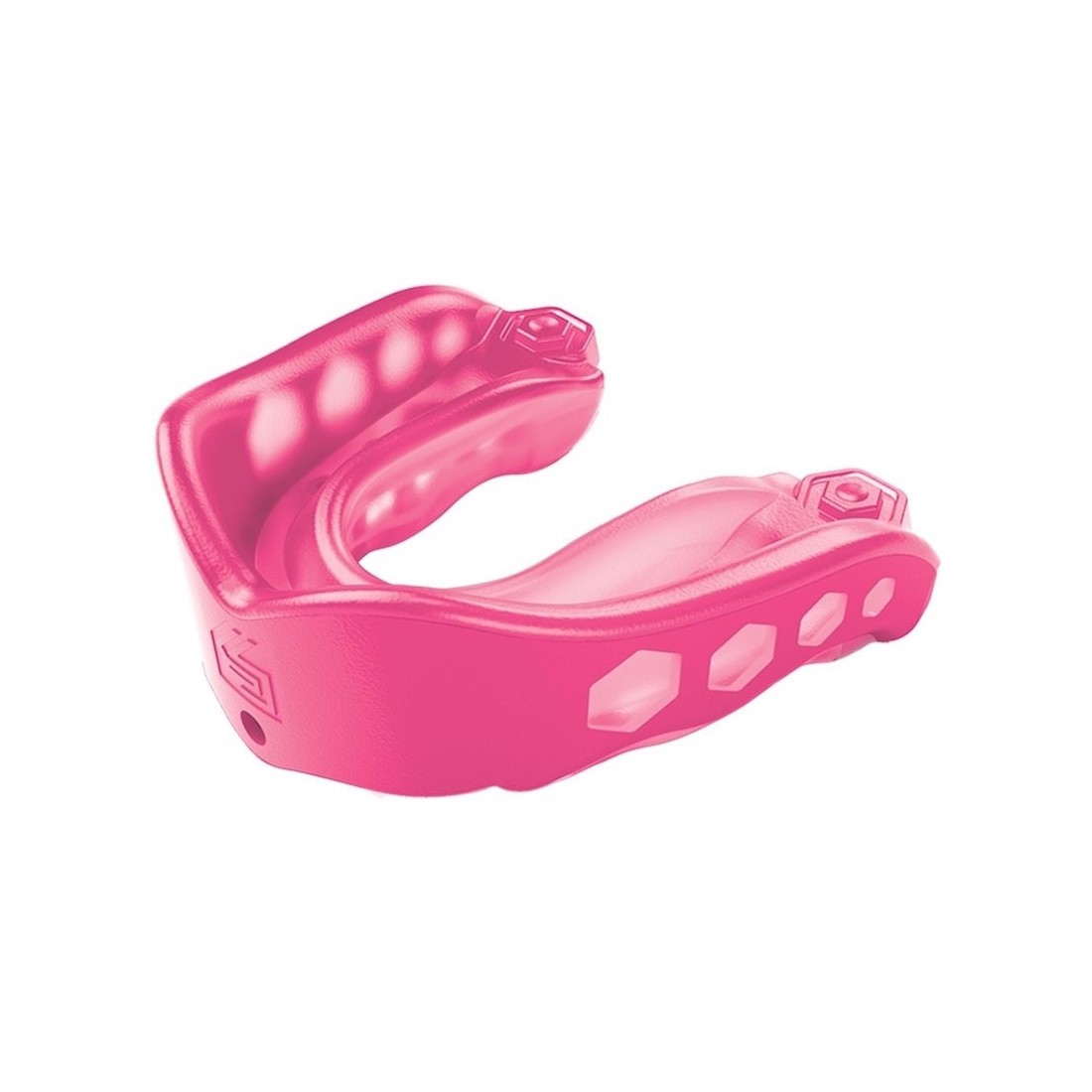 Protector Bucal Junior Gel Max Pink. El protector bucal Gel Max ofrece protección y comodidad esenciales con una ligadura convertible que permite usar el protector bucal con ligaduras o sin ellas. Este protector bucal de triple capa proporciona un ajuste universal.