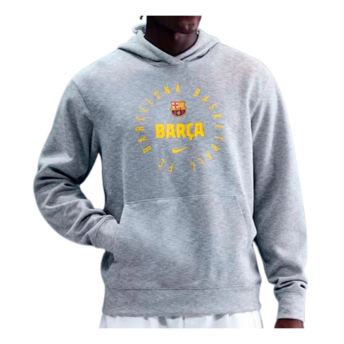 Sudadera FC Barcelona Basketball 25-26 Grey. Sudadera con capucha para hombre, cálida y cómoda, que rinde homenaje al FC Barcelona con el escudo y un estampado en el pecho. Perfecta para poder usarse tanto en el día a día como para entrenar cuando haga frío.