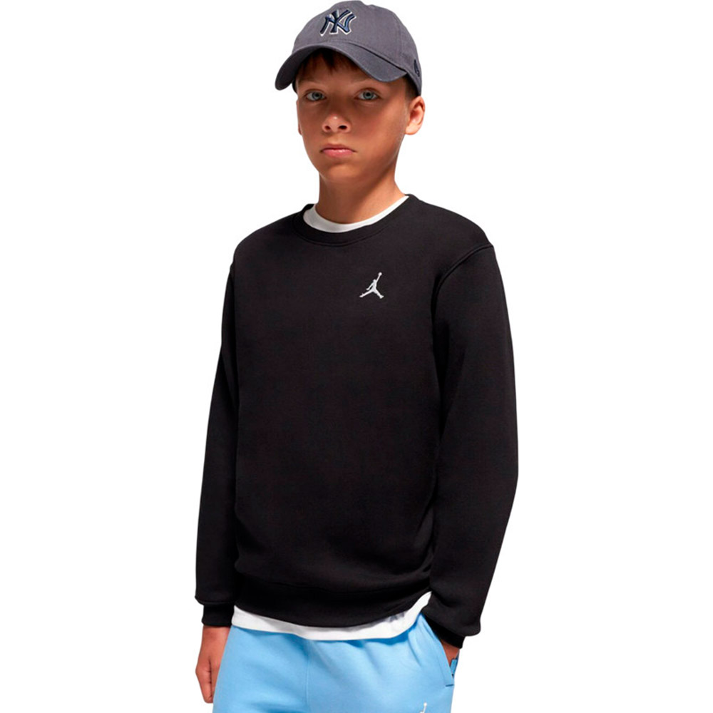 Sudadera Junior Jordan Brooklyn Fleece Crew Black. La sudadera junior Jordan Brooklyn Fleece Crew ofrece una opción cálida, cómoda y con estilo urbano. Confeccionada en tejido fleece de mezcla algodón-poliéster, su interior cepillado proporciona una sensación suave y acogedora, mientras que su exterior mantiene un acabado limpio y estructurado. El corte es cómodo, pensado para permitir movimiento sin restricción durante el uso diario o en actividades ligeras. Cuenta con un cuello redondo clásico y puños y dobladillo acanalados que ayudan a conservar el ajuste y evitan que la prenda se deforme durante el uso frecuente. En el pecho se encuentra el logo Jumpman que aporta identidad discreta pero distintiva.