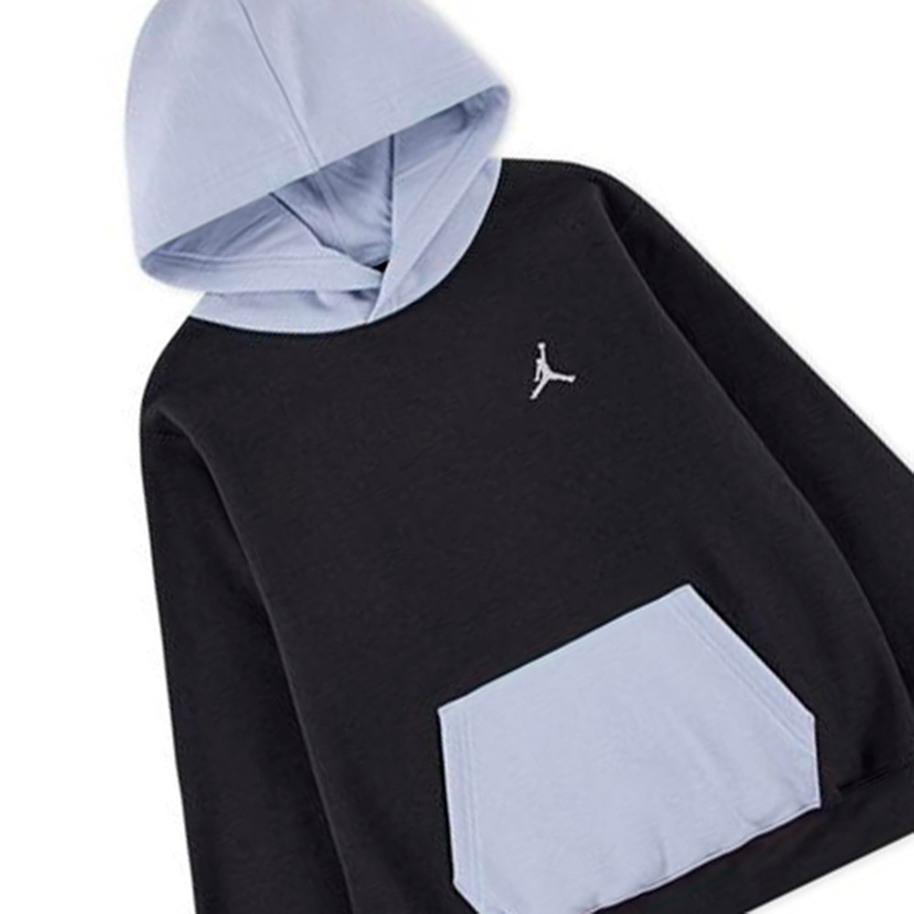 Sudadera Junior Jordan Brooklyn Fleece PO Sport Off Noir. La sudadera júnior Jordan combina el legado deportivo de la marca con la comodidad que necesitan los más jóvenes. Confeccionada en felpa suave, ofrece un tacto cálido y agradable para los días más frescos. Su diseño con capucha y bolsillo tipo canguro la convierte en una prenda práctica y funcional, perfecta para el día a día o para moverse con estilo en el parque o la cancha. El logotipo Jumpman en el pecho añade ese toque icónico que conecta directamente con el espíritu Jordan. Su ajuste regular permite libertad de movimiento, mientras que los puños y el bajo acanalados garantizan una sujeción cómoda.