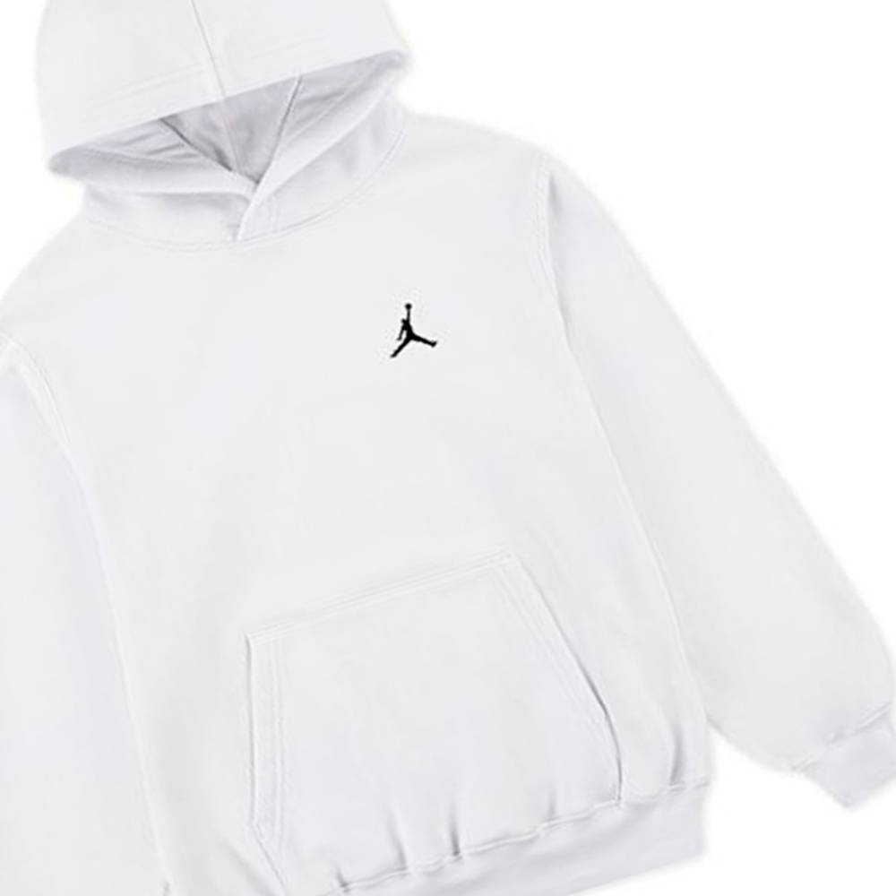 Sudadera Junior Jordan Brooklyn Fleece PO Sport White. La sudadera júnior Jordan combina el legado deportivo de la marca con la comodidad que necesitan los más jóvenes. Confeccionada en felpa suave, ofrece un tacto cálido y agradable para los días más frescos. Su diseño con capucha y bolsillo tipo canguro la convierte en una prenda práctica y funcional, perfecta para el día a día o para moverse con estilo en el parque o la cancha. El logotipo Jumpman en el pecho añade ese toque icónico que conecta directamente con el espíritu Jordan. Su ajuste regular permite libertad de movimiento, mientras que los puños y el bajo acanalados garantizan una sujeción cómoda.