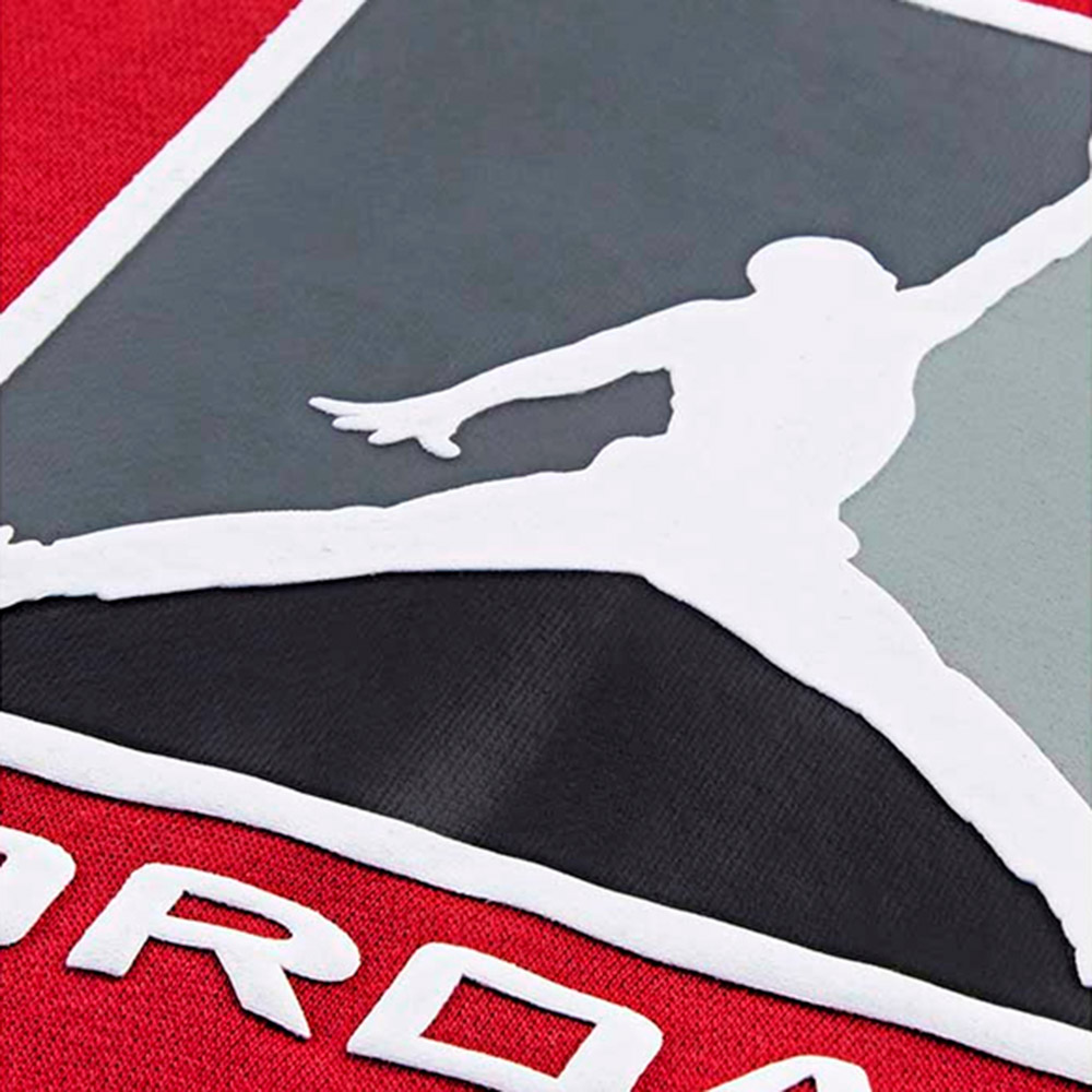 Logo Jumpman en el pecho que aporta carácter deportivo sin sobrecargar ni distraer de la estética general.