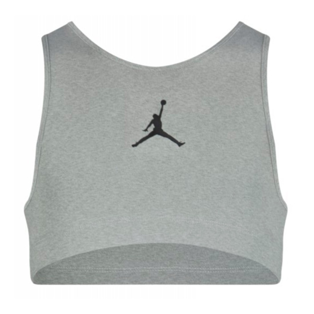 Sujetador Junior Jordan Jumpman Solid Sports Grey. Con un diseño de tirantes anchos en la espalda, este sujetador deportivo junior de la marca Jordan ofrece un ajuste ceñido y seguro mientras se realiza la actividad deportiva. Confeccionado con una combinación de tejidos suaves y ligeros de poliéster y spandex, ofrece frescura, comodidad y una sujeción ideal.