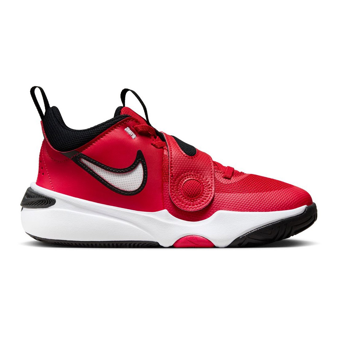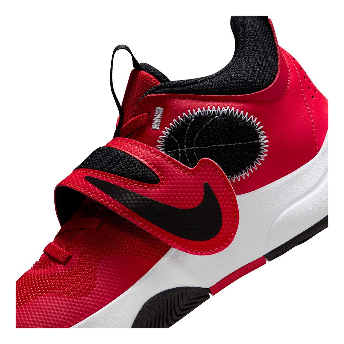 Junior Nike Team Hustle D 11 University Red. Desde dar los primeros pasos hasta imaginar el futuro como estrella del baloncesto, las Nike Team Hustle D 11 son perfectas para los partidos durante esos primeros años. La 11.ª edición de la serie Team Hustle D cuuenta con un diseño fácil de poner y quitar: la lengüeta se abre a lo ancho y la correa grande protege los pies de los más pequeños. Además, la amortiguación es más mullida que en las ediciones anteriores. Hemos mejorado las zapatillas para jugar definitivas.