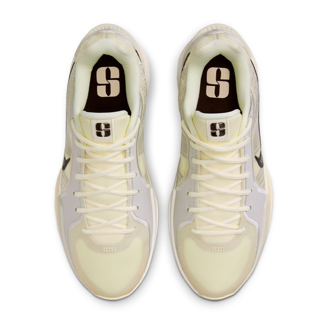 Echa un vistazo a los fragmentos alrededor del logotipo de Swoosh, una oda al proverbial techo de cristal que Sabrina continúa abriéndose camino en el juego de baloncesto. Las S bordadas en la mitad posterior del diseño rinden homenaje a los tejedores de sueños que continúan esforzándose por hacer más.