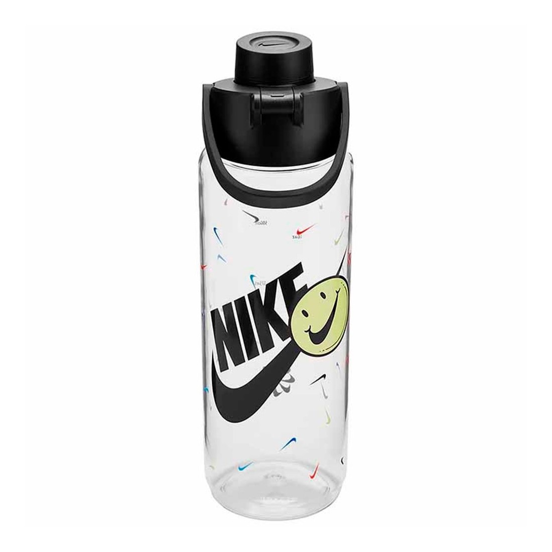 Bouteille Nike TR Renew Recharge Chug Cristal. Cette bouteille est idéale car elle possède un très bon design sur le bec et un graphisme original et accrocheur pour vous permettre de vous hydrater facilement pendant les entraînements et les matchs. Avec un système anti-goutte qui permet un écoulement rapide de l'eau et une bonne capacité pour que vous ne manquiez pas de boisson.