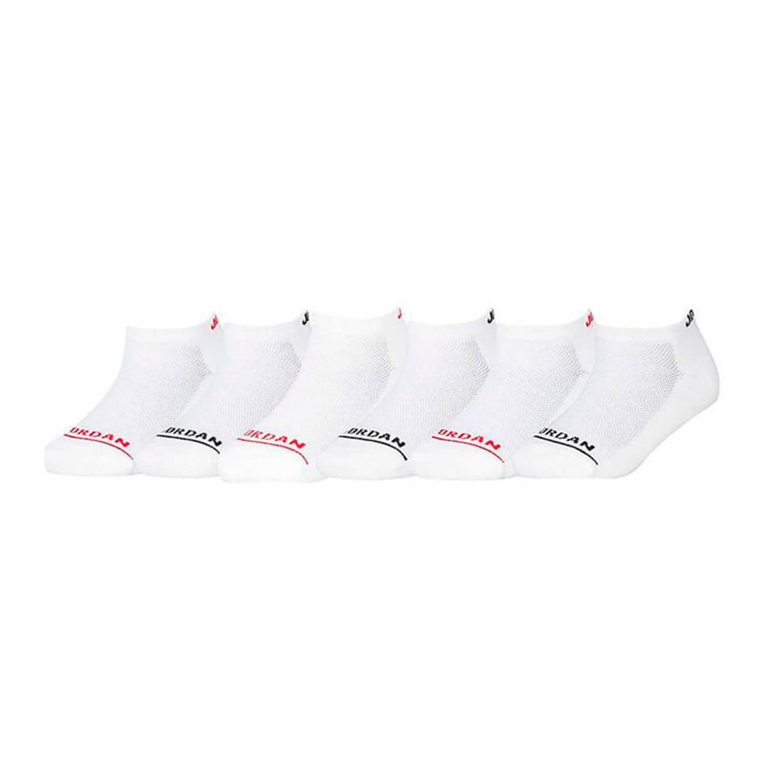 Junior Socks Jordan Legend No Show White (6pk). Ce pack de 6 paires de chaussettes Junior Jordan Legend No Show te permettra de jouer au basket-ball aussi longtemps que tu le souhaites sans que tes pieds ne te gênent grâce à la technologie Dri-FIT et au tissu respirant et confortable. De plus, le coloris blanc s'accorde avec toutes les chaussures.