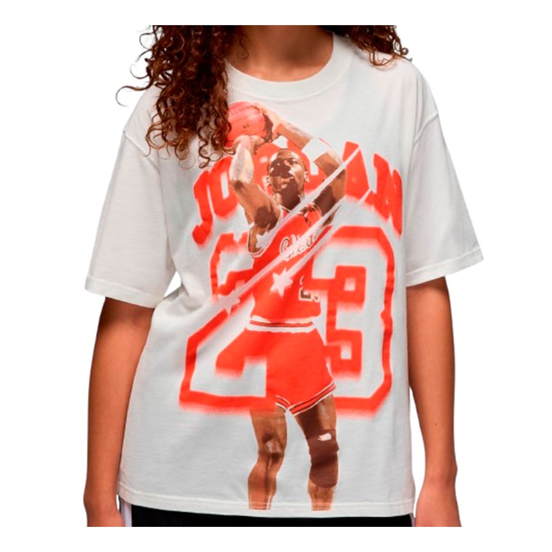 T-shirt pour femmes Jordan Oversized Graphic Sail. Triples et étoiles filantes se combinent pour créer un imprimé stellaire. De plus, ce modèle est fabriqué en coton doux et confortable, il est donc parfait pour tous les jours.