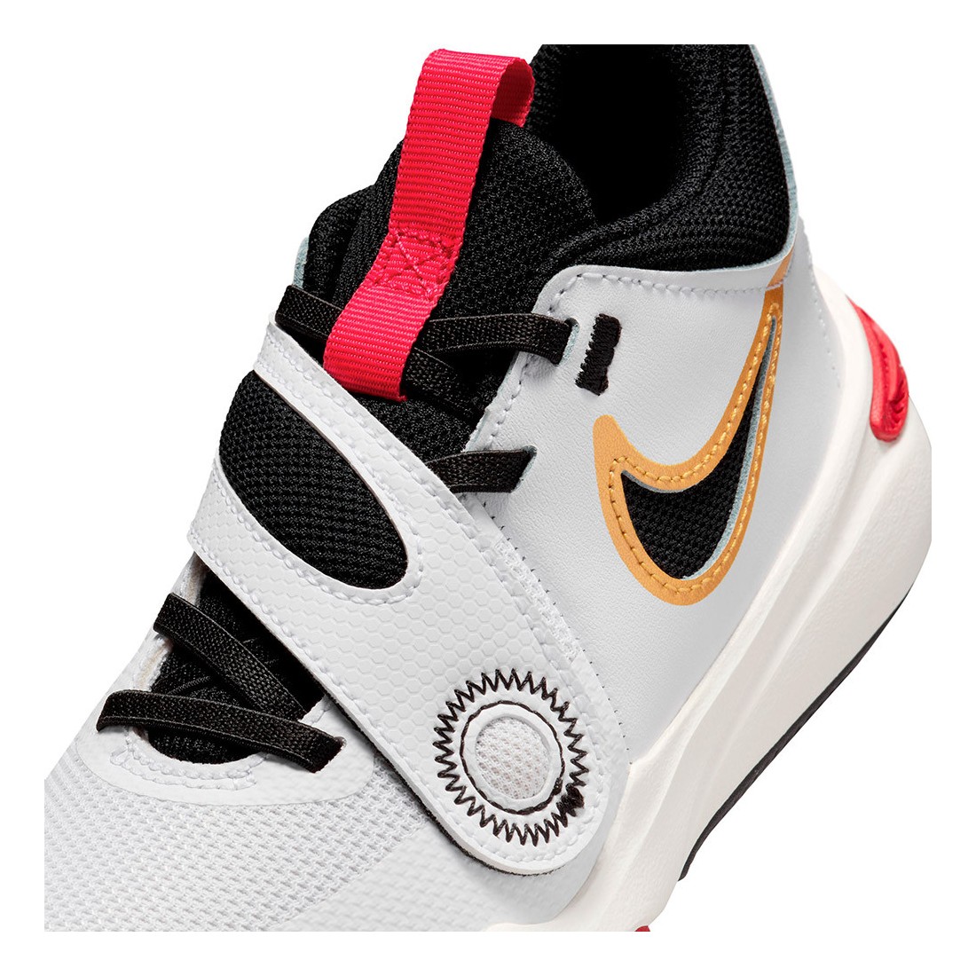 Junior Nike Team Hustle D 11 White. Que tu fasses tes premiers pas ou que tu imagines ton avenir de star du basket, la Team Hustle D 11 de Nike est parfaite pour les matchs de ces premières années. La 11ème édition de la série Team Hustle D présente un design facile à enfiler et à enlever : la languette s'ouvre largement et la large sangle protège les petits pieds. De plus, l'amorti est plus souple que dans les éditions précédentes. Nous avons amélioré la chaussure de jeu par excellence.