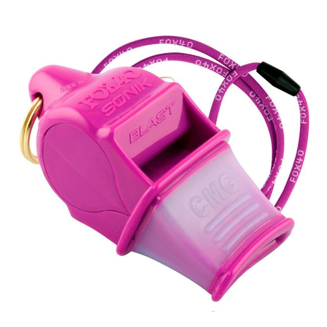 Sifflet Fox 40 Sonik Blast CMG Purple. Le Fox40 Sonik Blast CMG est un sifflet professionnel sans bille conçu pour produire un son puissant et clair dans toutes les conditions. Grâce à sa technologie brevetée à double chambre et à ses quatre résonateurs, il produit un sifflement de 120 dB, audible sur de longues distances, même dans des environnements bruyants ou à l'extérieur. Fabriqué en plastique ABS robuste, il est étanche, ne gèle pas et ne s'encrasse pas, offrant ainsi une fiabilité totale. Comprend la confortable poignée CMG® Cushioned Mouth Grip, qui protège les lèvres et améliore la prise en main, ainsi qu'une lanière ou un anneau métallique pour faciliter le transport.