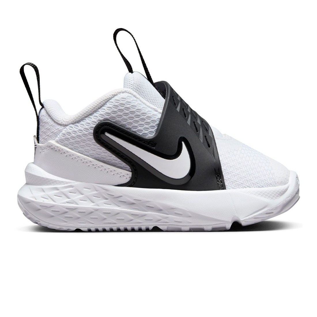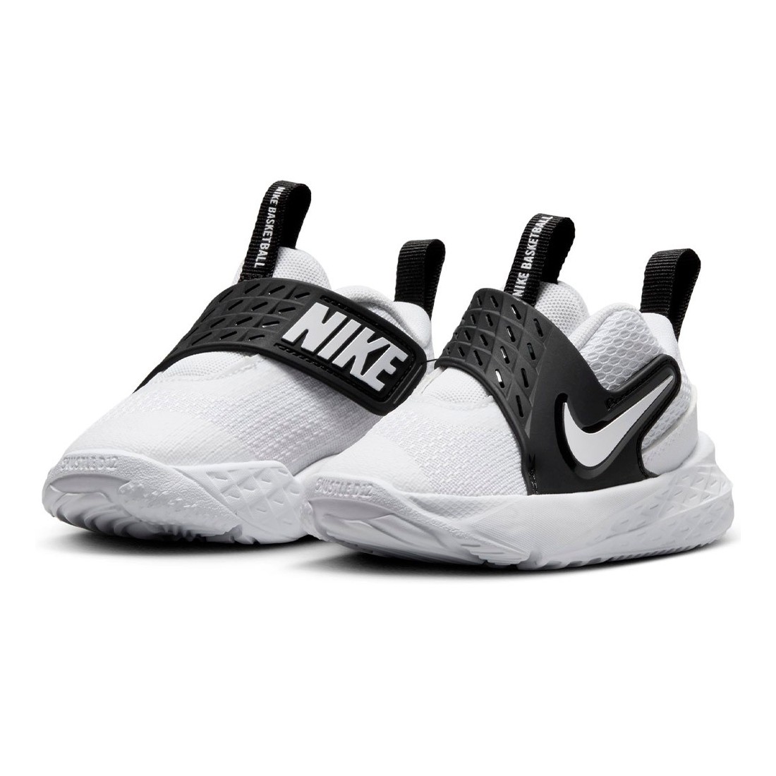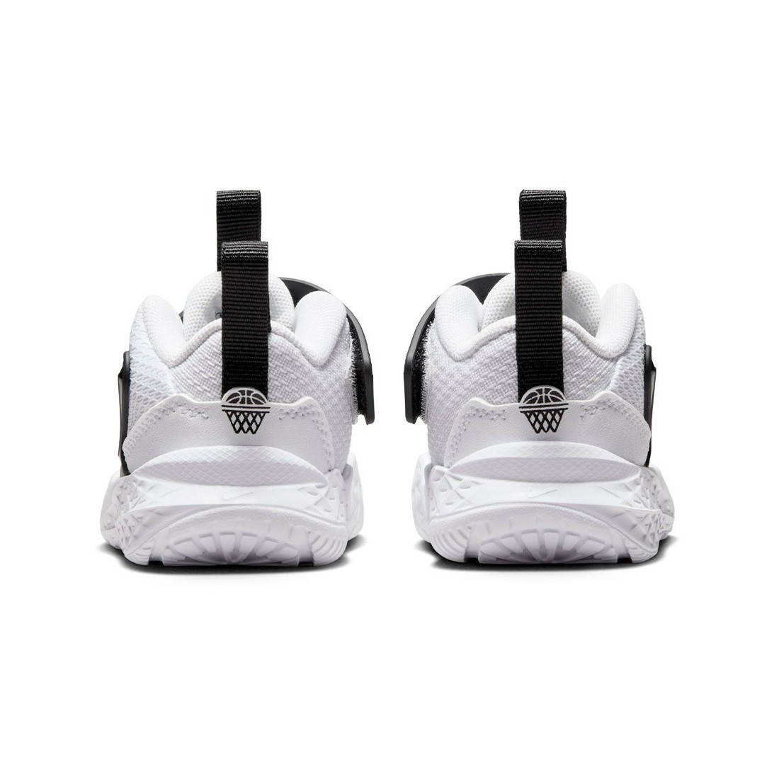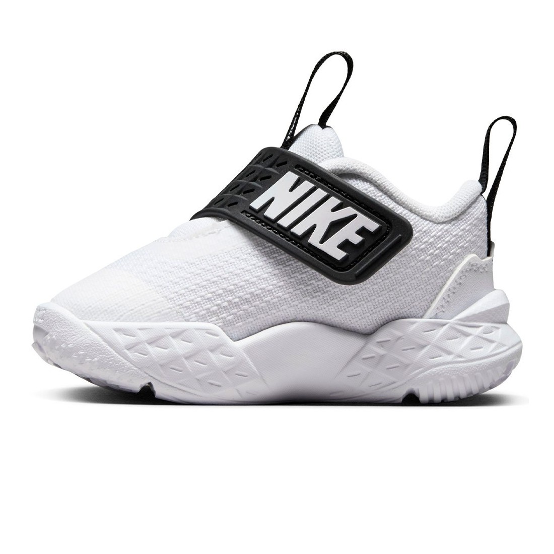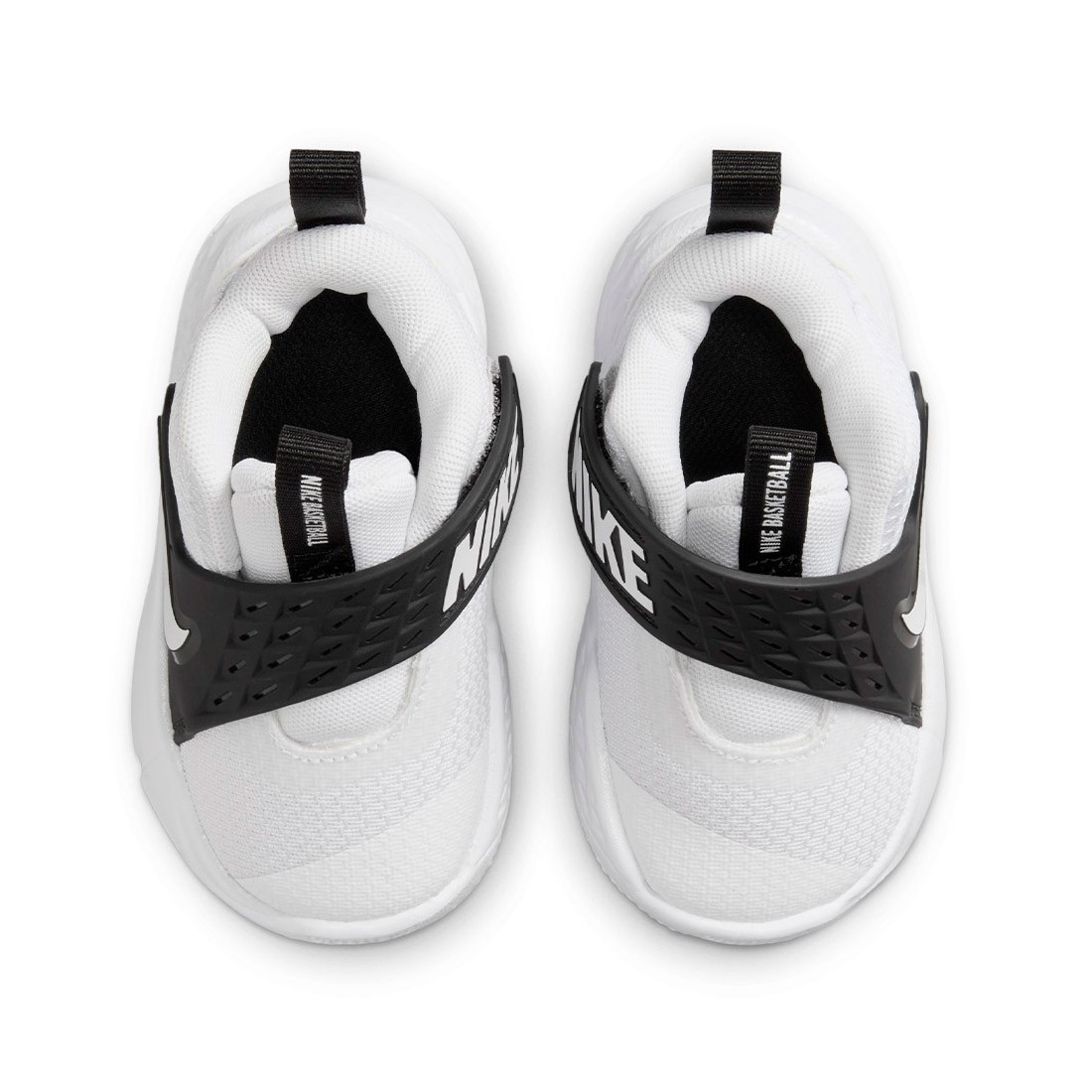Baby Nike Team Hustle D 12 White. The Hustle D is the perfect basketball shoe for finding balance on the court and enjoying a firm, comfortable fit in seconds. The strap allows you to open the shoe completely and get a snug fit in the blink of an eye. Soft foam provides a springy, cushioned feel, while the rubber outsole offers grip and flexibility for confident play on multiple surfaces.