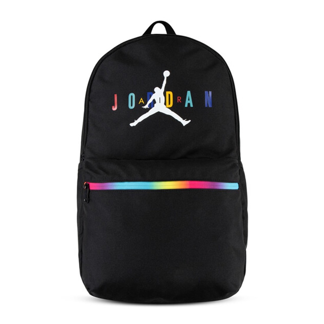 Backpack Jordan HBR Air Black Multicolour.This backpack is a versatile and functional option for those looking for style and practicality in their everyday life. Its design includes a main compartment with mesh pocket and key fob, a back compartment with padded laptop or tablet sleeve, side bottle pockets and a quick access front pocket. Adjustable padded shoulder straps ensure comfort during use.