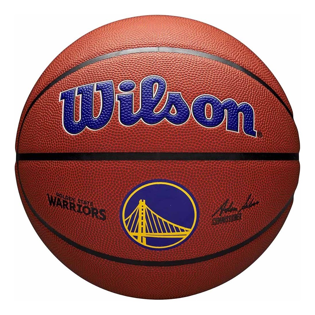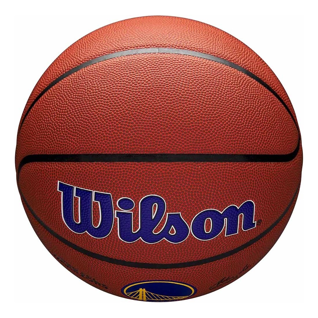 Ball Wilson Golden State Warriors Logo NBA Team Sz7. The basketball supplier to the basketball league, Wilson, has designed a ball to identify each team on the NBA using the franchise's identifying colours. Suitable for indoor and outdoor use, it allows you to cheer on your team and offers a high-performance Pure Feel Cover for a long-lasting, professional-level feel.