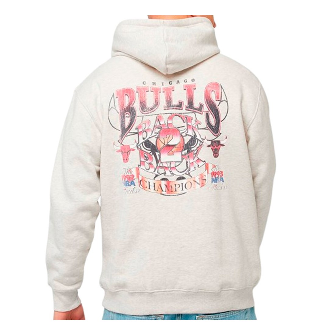 Chicago Bulls Graphic 1993 Grey sweatshirt. the Chicago Bulls NBA Team Logo sweatshirt from Mitchell & Ness is an essential for fans of the team. Made from high-quality materials, it offers a soft, durable texture that ensures comfort and durability. The design features the iconic Chicago Bulls logo on the front, highlighting pride in the team. Equipped with an adjustable hood and kangaroo pocket, it provides functionality and protection from the cold. The Mitchell & Ness signature is highlighted on a woven label, ensuring authenticity and style.