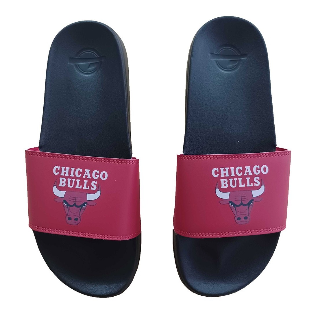 Chicago Bulls Logo Red Black Flip Flops. These Chicago Bulls flip-flops combine comfort and style for fans of the NBA's most successful team. With an ergonomic footbed and an abrasion-resistant spandex-lined strap, they offer all-day comfort. The lightweight EVA sole provides support. These flip-flops are a perfect choice for those who want to combine functionality with passion for their favourite team.