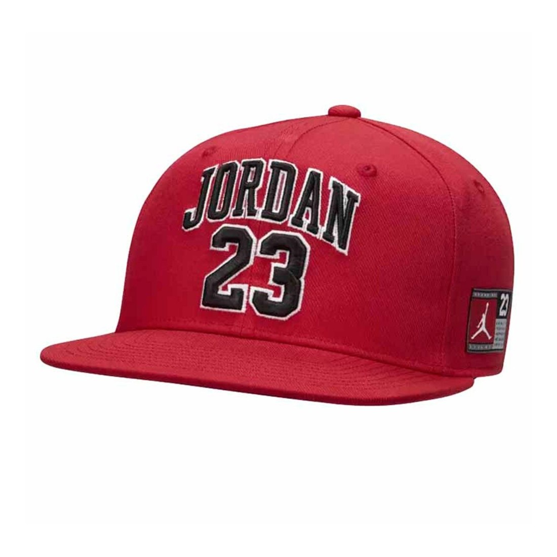 <p><p><strong>Jordan Jersey Flat Rim Red Cap</strong>. Show them your hops with the Jordan Jersey Flat Rim Cap. It has a flat bill and high structured crown made from tightly woven twill. The iconic Jordan 23 lettering is embroidered on the front, an old classic projection of the Brand's heritage.</p></p>