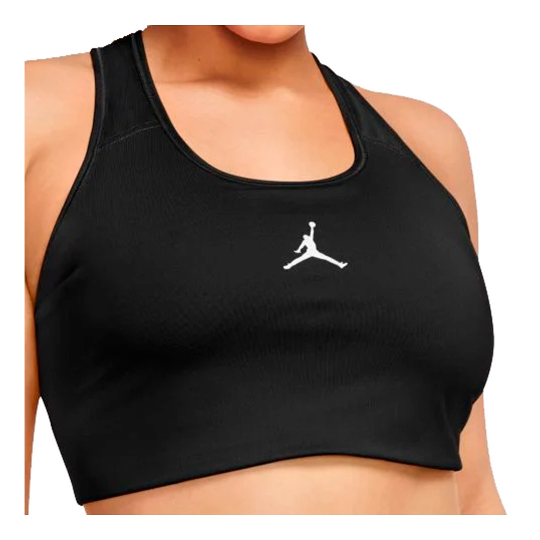 Jordan Jumpman Meddium Suppert Black Bra. Featuring a wide, criss-cross back strap design, this Jordan Brand sports bra offers a snug, secure fit while engaging in athletic activity. Made from a combination of soft, lightweight fabrics with Dri-FIT technology to facilitate sweat wicking and maintain coolness, comfort, and ideal support.