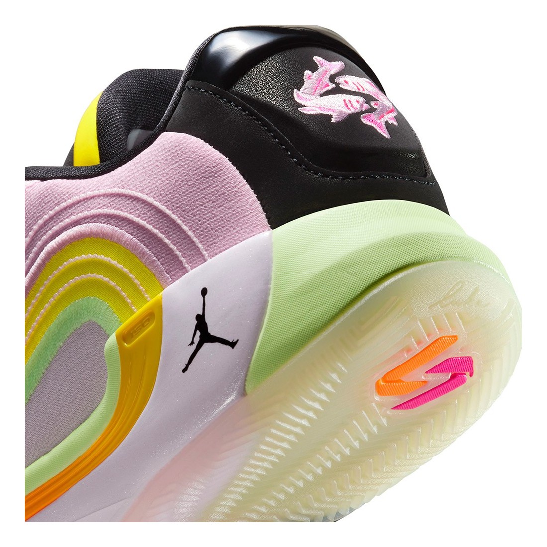 Jordan Luka 4 Gone Fishing. Luka Dončić plays without remorse. He scores winning shots without breaking a sweat and leaves defenders with blank stares, and he never regrets it. What kind of shoes are designed for someone like that? They should be comfortable and supportive, ideal for step-backs, Euro-steps and playing hard in the post. Flightwire cables. IsoPlate. Cushlon foam. Air Zoom unit. It all has to be there. In short, you have to give a defensive player a really good shoe.