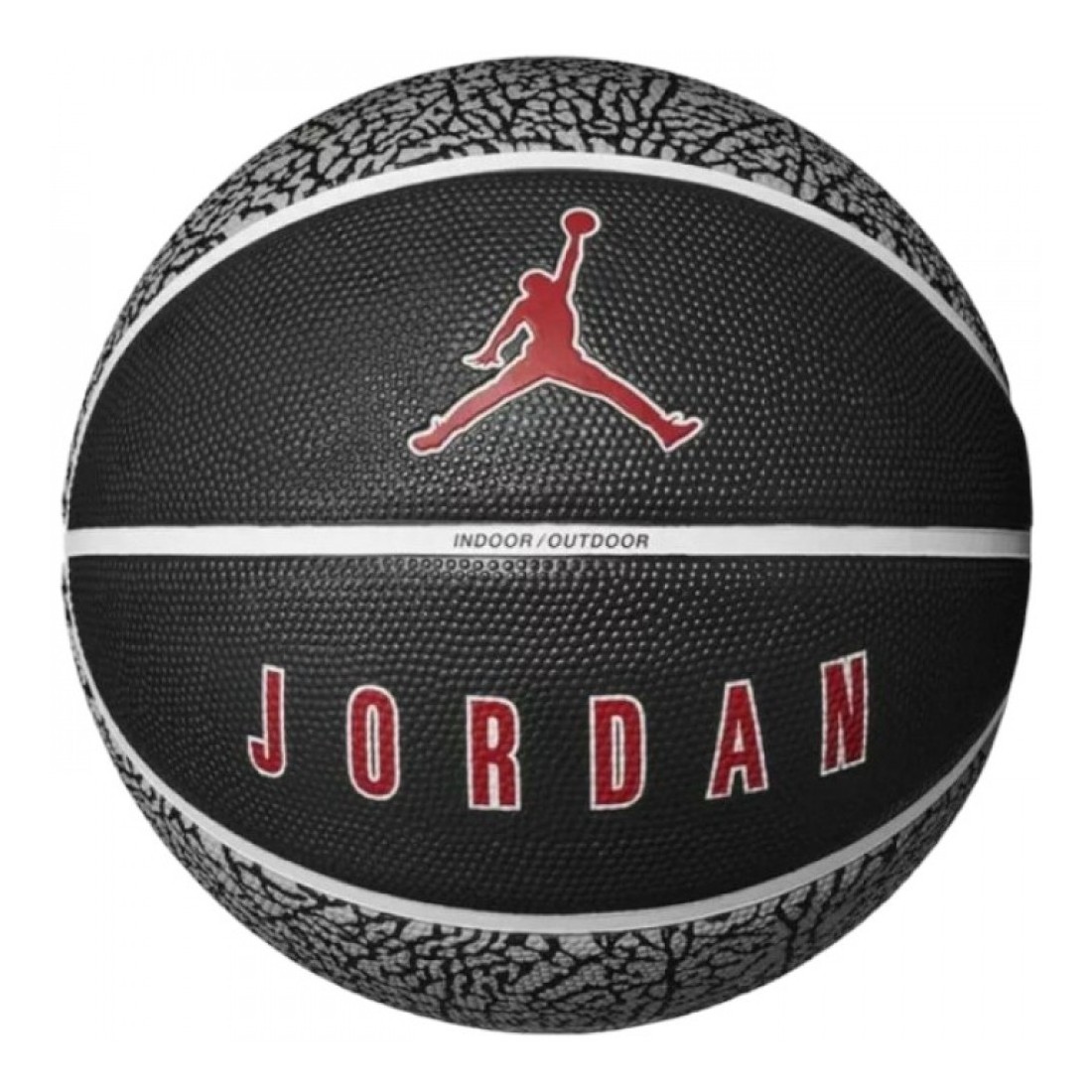 Ball Jordan Playground 8P Black Red Sz5. The Jordan Playground 8P basketball is designed for indoor and outdoor use. It has a textured shell and deep grooves for precise grip and control during play.