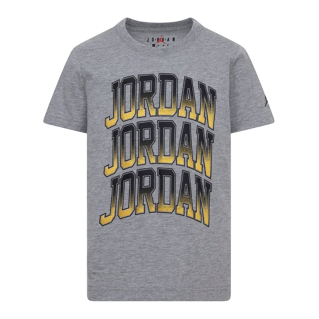 Junior Jordan 3K Grey T-Shirt. This Jordan t-shirt is made from soft cotton fabric for all-day comfort on the court or on the street. Ideal to show off a Jordan style during this time of year.