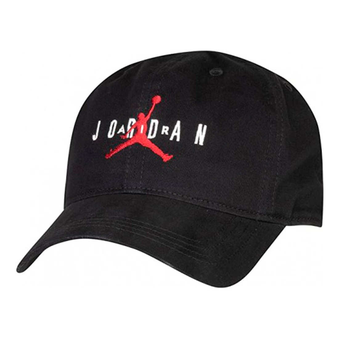 Junior Jordan Air HBR Strapback Black Cap. The Jordan brand has designed accessories that adapt to any style and routine. This cap opts for a comfortable, custom design with Jordan embroidered details. Topping off this accessory is a curved visor and snapback strap for a perfect fit.