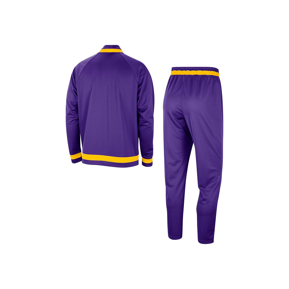 Los Angeles Lakers Dri-FIT Starting 5 Junior Tracksuit. This tracksuit from Nike NBA is lined with comfortable mesh and adorned with a combination of prints and embroidery, piping details and graphic tape along the shoulders. The jacket and trouser combo is perfect for training, warm-ups or everyday wear.