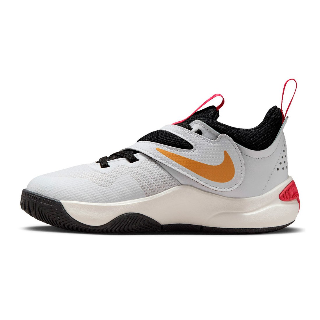 Junior Nike Team Hustle D 11 White. From taking your first steps to imagining your future as a basketball star, the Nike Team Hustle D 11 is perfect for games during those early years. The 11th edition of the Team Hustle D series features an easy-on, easy-off design: the tongue opens wide and the large strap protects little feet. Plus, the cushioning is softer than in previous editions. We've improved the ultimate play shoe.