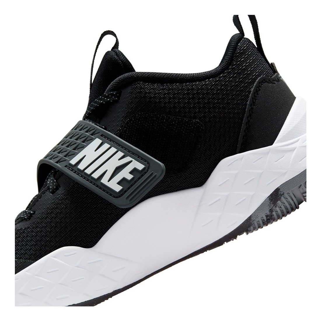 Junior Nike Team Hustle D 12 Black. The Hustle D is the perfect basketball shoe for finding balance on the court and enjoying a firm, comfortable fit in seconds. The strap allows you to open the shoe completely and get a snug fit in the blink of an eye. Soft foam provides a springy, cushioned feel, while the rubber outsole offers grip and flexibility for confident play on multiple surfaces.