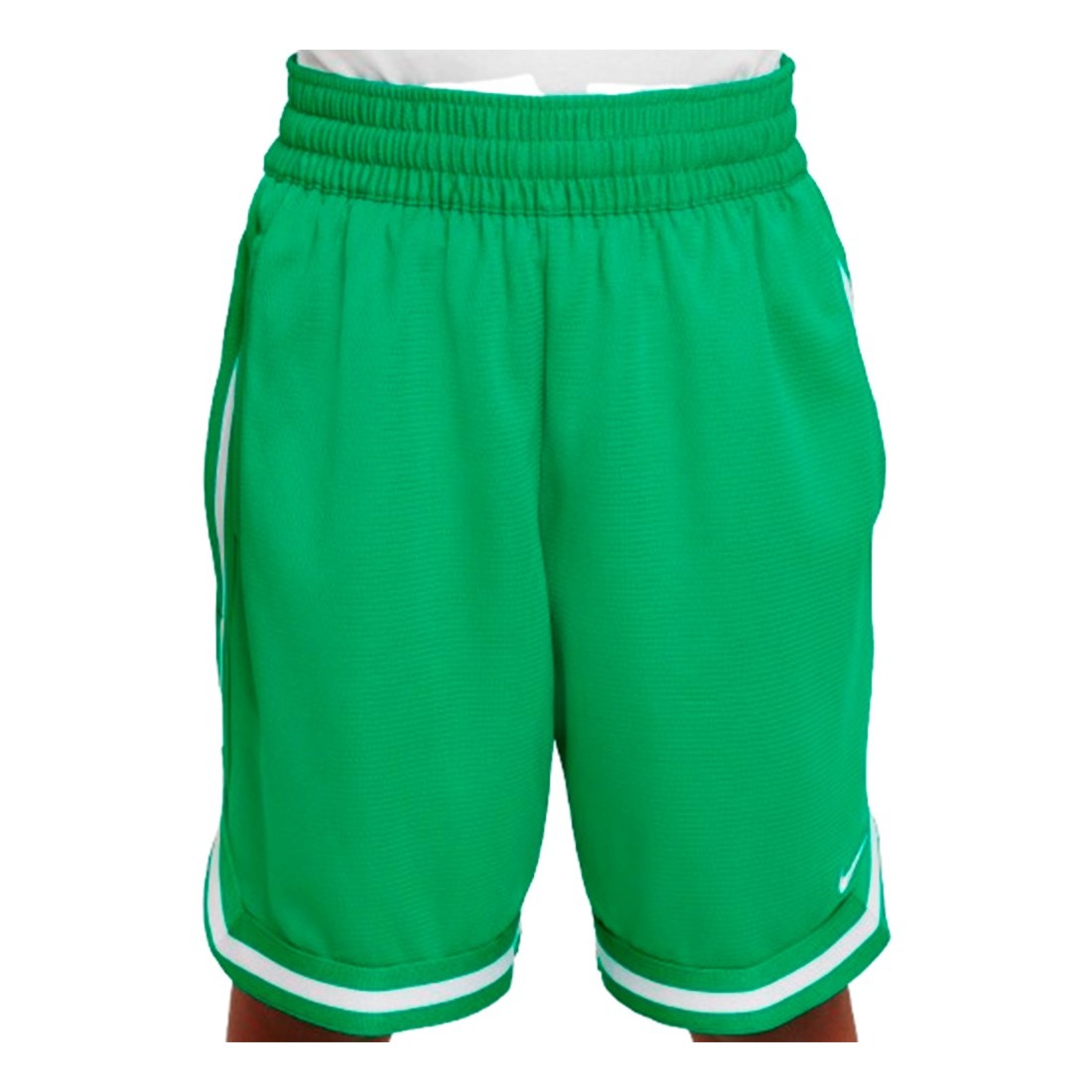 Junior Shorts Nike DNA Dri-FIT Stadium Green. These roomy basketball shorts are perfect for everything from home drills to games at the park with your friends. Comfortable knit fabric wicks sweat away from the skin to keep you cool and focused when dribbling, advancing and making the decisive shot. Plus, the zippered pocket keeps small essentials secure as you sprint down the court for your next dunk.