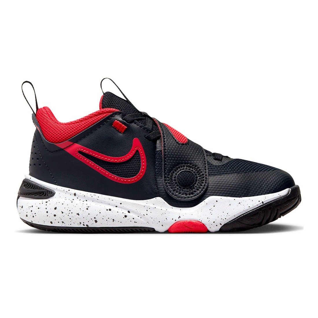 Kids Nike Team Hustle D 11 Black University Red. From taking your first steps to imagining your future as a basketball star, the Nike Team Hustle D 11 is perfect for games during those early years. The 11th edition of the Team Hustle D series features an easy-on, easy-off design: the tongue opens wide and the large strap protects little feet. Plus, the cushioning is softer than in previous editions. We've improved the ultimate play shoe.