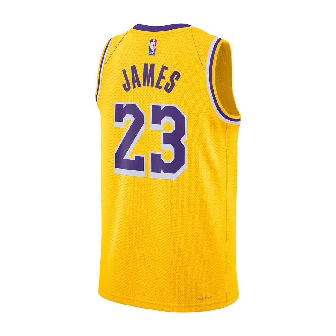 LeBron James Los Angeles Lakers 23-24 Icon Edition Swingman. Dress like your favourite player in this Los Angeles Lakers jersey, the perfect piece of apparel for any fan, featuring a logo and design details to match the uniform worn by the pros on the court. Breathable mesh fabric with sweat-wicking technology keeps you cool and breathable whether you're giving it your all on the court or looking casual on the street.