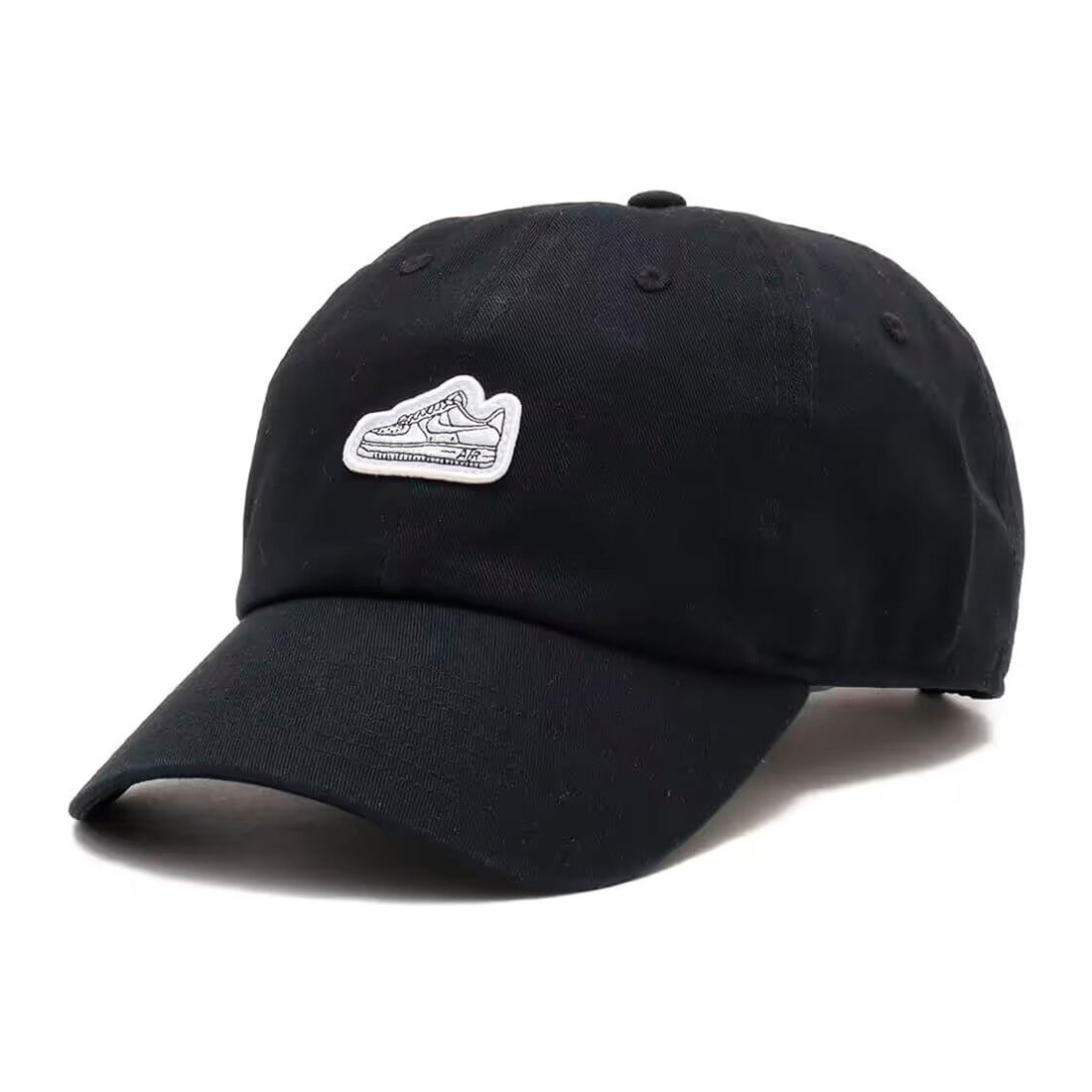 Nike Club AF1 Black Cap. This classic cap pays homage to one of basketball's most legendary sneakers: the Air Force 1. The unstructured crown offers a relaxed, casual look that pairs well with its clean, curved bill and embroidered AF1 patch.