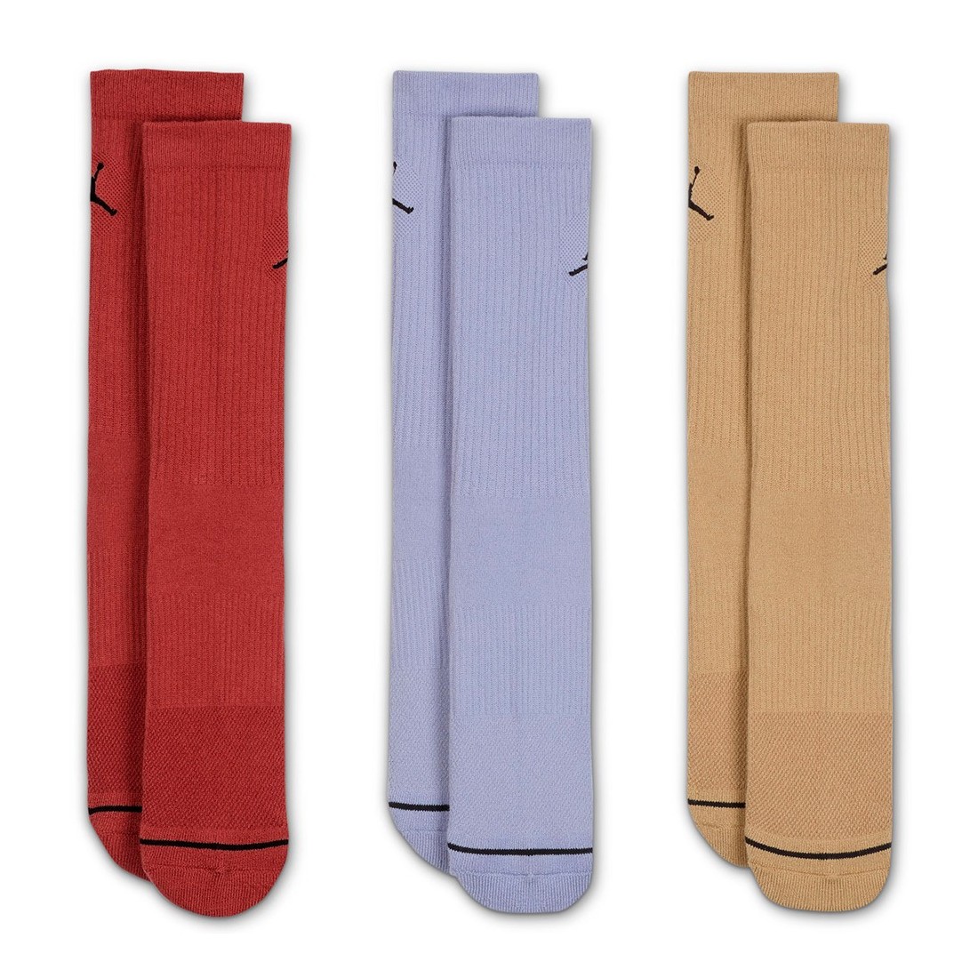 Socks Jordan Everyday Crew Red Grey Brown 3pk. These soft Jordan socks are a must-have for everyday wear. Dri-FIT fabric and breathable mesh on the top of the foot help maintain breathability, and the foot bridge band provides a snug fit.