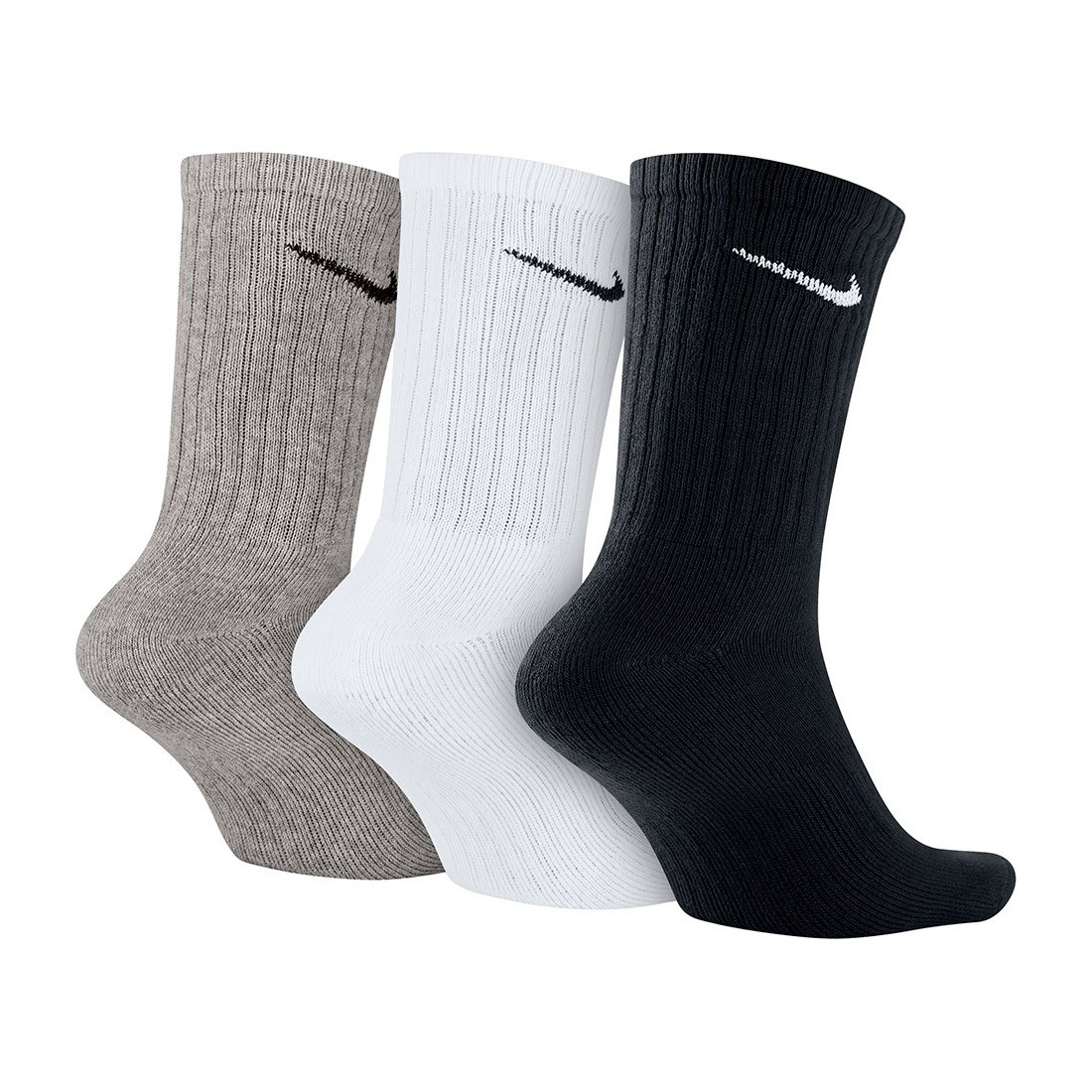 Socks Nike Cushioned Grey White Black 3pk. The Nike Cushioned socks are made from soft, sweat-capillary yarns and have a snug fit for long-lasting comfort in the gym and on a daily basis.