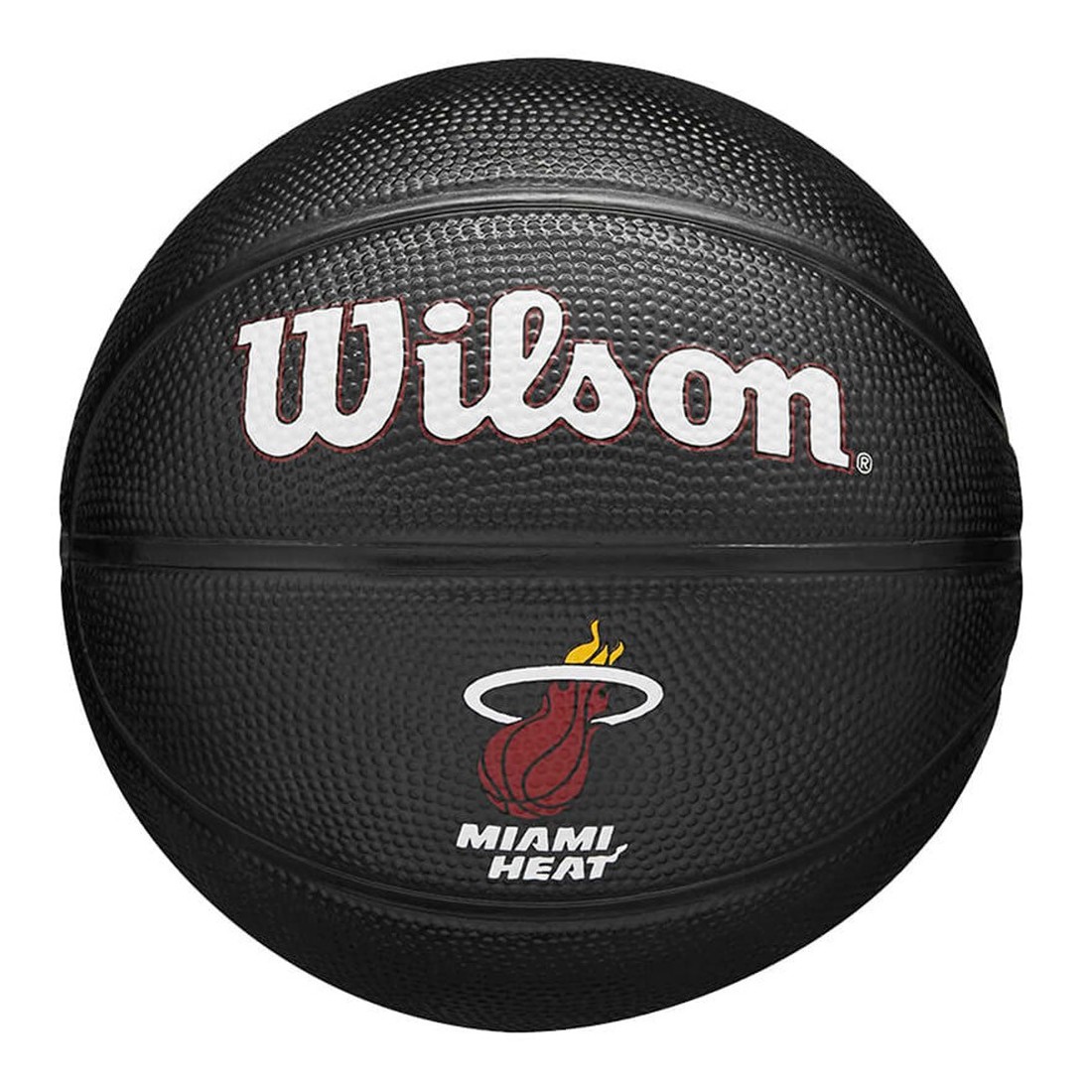Wilson Miami Heat NBA Team Mini Basketball Sz3. This Miami Heat Wilson basketball features an black pattern to prominently feature the NBA franchise logo. The Performance Cover is designed to take on any court you choose, built with durable grip for rough surfaces. Size 3.