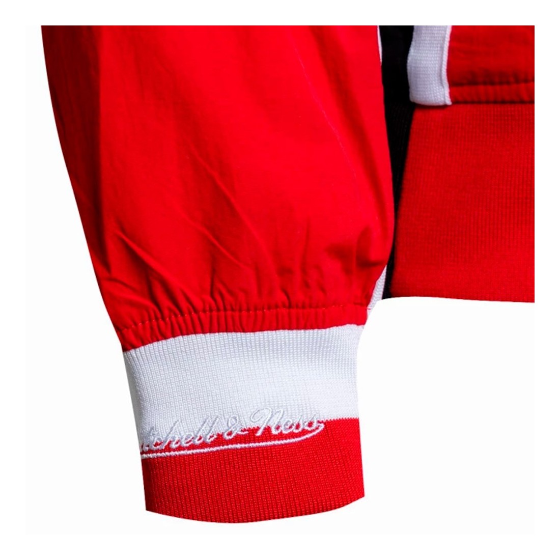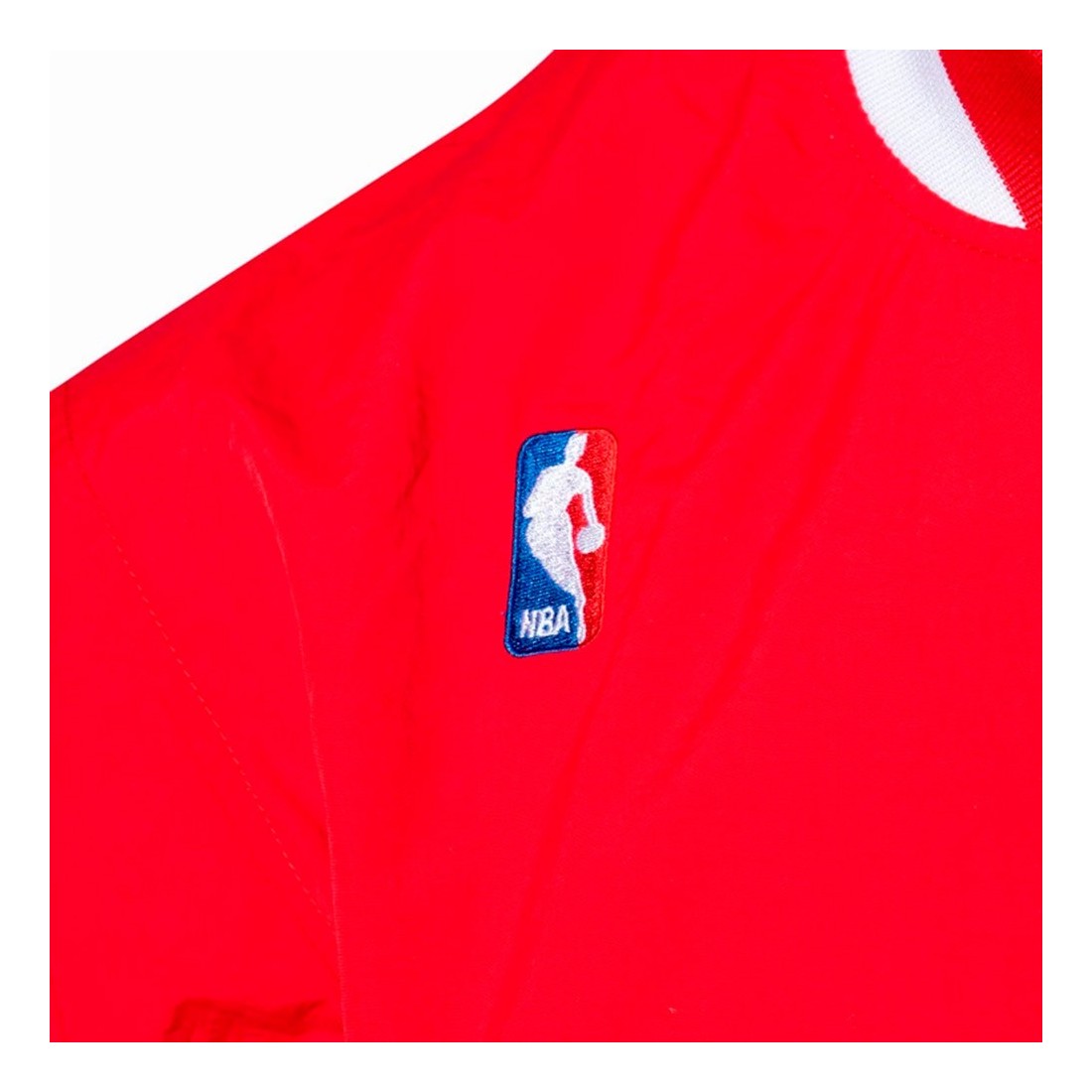 Giacca Chicago Bulls Warm Up 96-97 Authentic Red. La giacca Mitchell & Ness Chicago Bulls è un capo iconico che rende omaggio all'epoca d'oro della squadra. Realizzata in tessuto di alta qualità, offre comfort e durata. Il design è caratterizzato dal classico logo Bulls ricamato sul petto e da dettagli in bianco e nero che evocano lo stile retrò degli anni '90. La zip a tutta lunghezza e i polsini elasticizzati assicurano una vestibilità aderente, mentre le tasche laterali aggiungono funzionalità. Ideale per i tifosi che vogliono mostrare la loro passione per il basket con un tocco vintage.