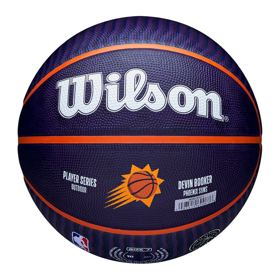 Devin Booker Phoenix Suns NBA Player Icon Sz7 Ball. Il pallone NBA Player Icon Outdoor Devin Booker porta il nome e il sottile ritratto del giocatore di NBA e presenta i colori dei Phoenix Suns. La copertura PureFeel e la ritenzione d'aria di lunga durata consentono di giocare ancora più a lungo e, grazie alle speciali scanalature, offrono una presa ottimale.