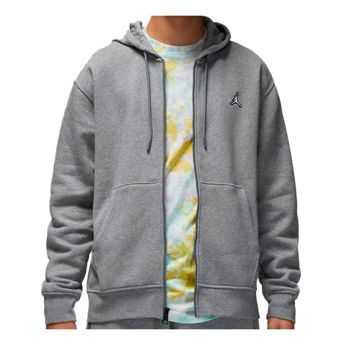 Jordan Felpa con cappuccio grigia Air Essentials Full-Zip. Jordan La felpa con cappuccio grigia Essential, realizzata in morbidissimo tessuto di pile, è un perfetto outfit autunnale e un'impareggiabile tela per il patch Jumpman e gli esclusivi ricami.