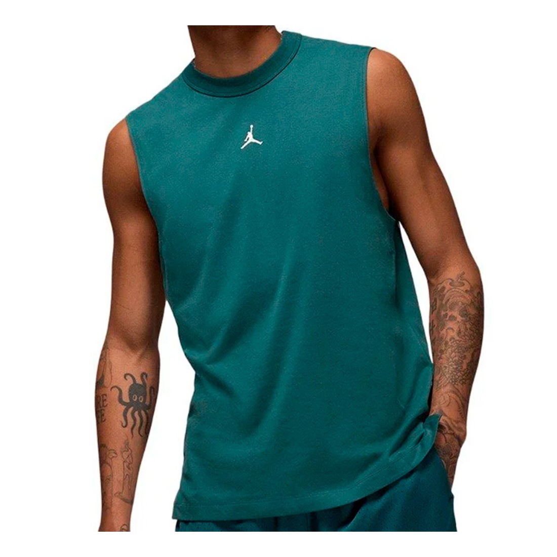 <p><strong>T-shirt Jordan Dri-FIT senza maniche verde ossidato</strong>. Questa maglietta è stata progettata per aiutarvi a dare il meglio in campo. È realizzata in un misto poliestere/cotone versatile, leggero e traspirante. Inoltre, è arricchita da materiale traspirante per aiutarvi a rimanere freschi durante le sessioni più estenuanti.</p>