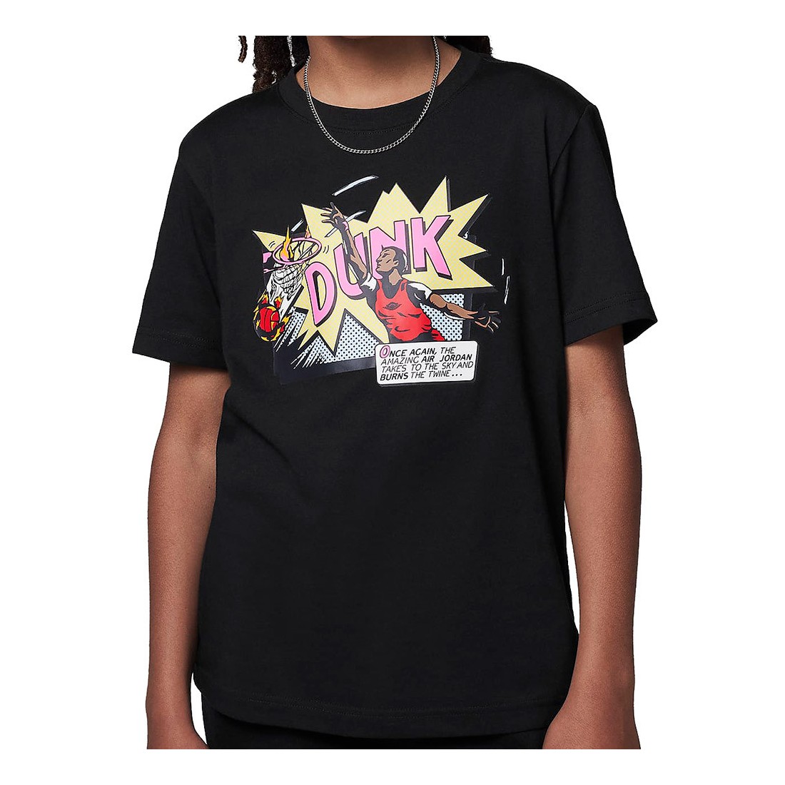 T-shirt Junior Jordan Comic Dunk Black. Questa t-shirt Jordan è realizzata in morbido tessuto di cotone per un comfort che dura tutto il giorno in campo e in strada. Perfetta per lo stile Jordan in questo periodo dell'anno.